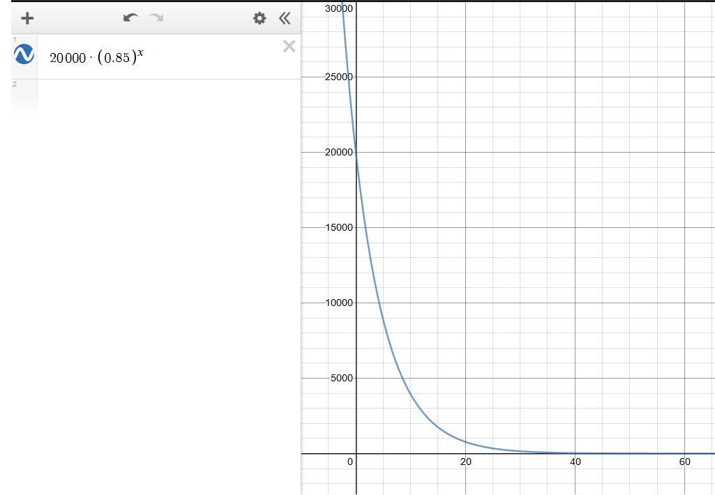 The base price of the car is $20,000. Then, every year, the value of the car depreciates by 15%, that it means, every year the value of the car is 85% than the value of the previous year.