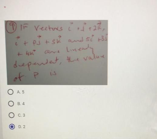 Therefore, the value of p for which the vectors are linearly dependent is 2