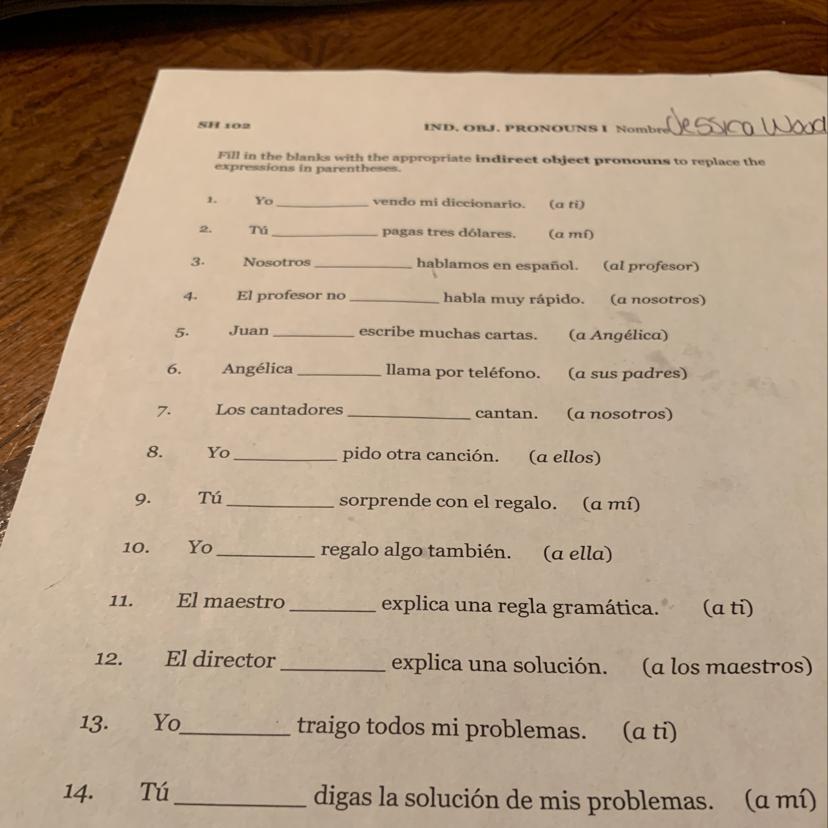 <u><em>Indirect object pronouns</em></u>