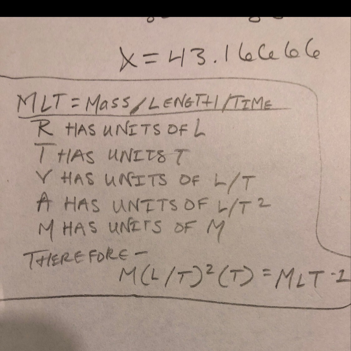 Take 'm·v·r' : 'm' is a mass. The 'v' is a velocity, so it's something like (meters)/(sec), which is dimensions of (length) / (time) or [ L·T⁻¹ ]. The 'r' is radius, so it has dimensions of length [ L ].