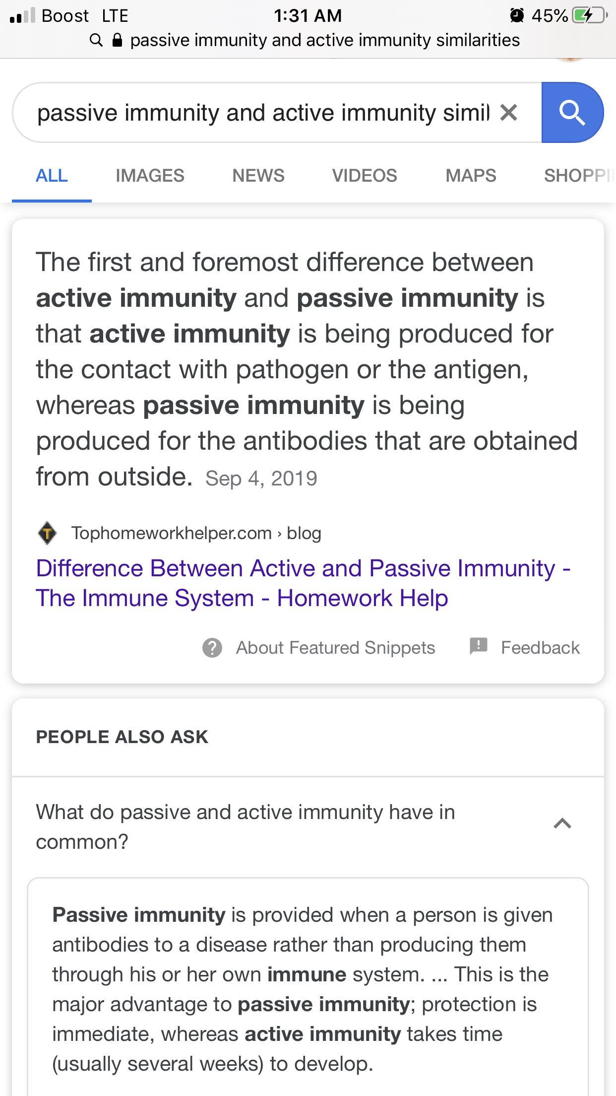 Passive immunity lasts only for a few week or months, whereas active immunity is long-lasting.