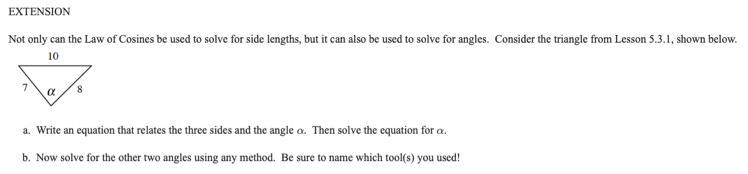 let a = 10, b = 7, c = 8 and A = α, then