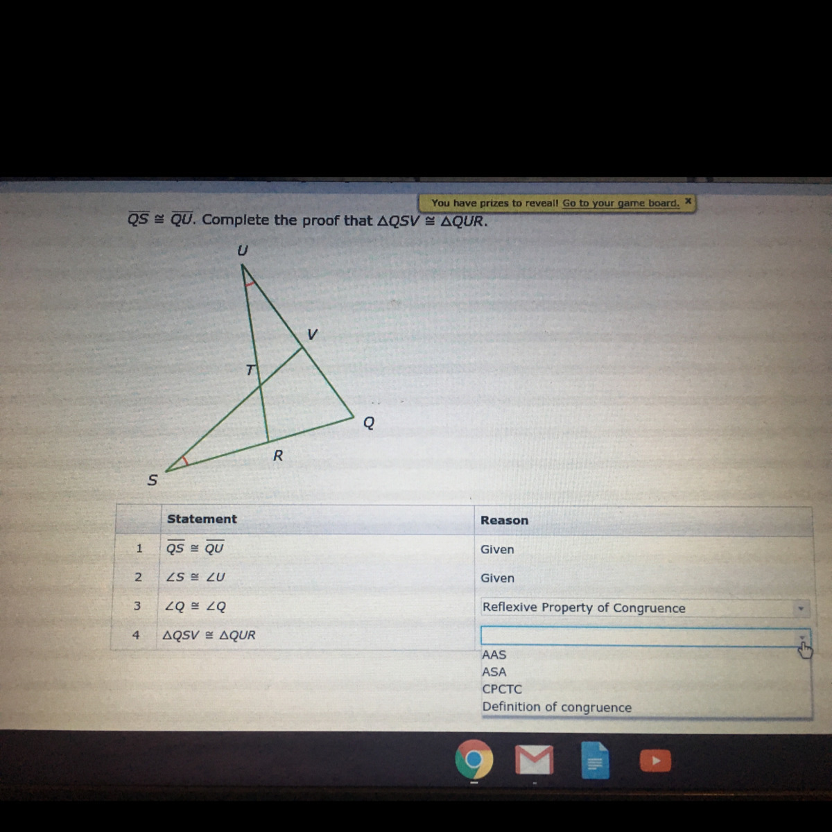 Angles U and Q are at either end of segment QU, so <em>the segment is between the angles</em>. If it were off to one side of the two angles, then you would claim AAS congruence.