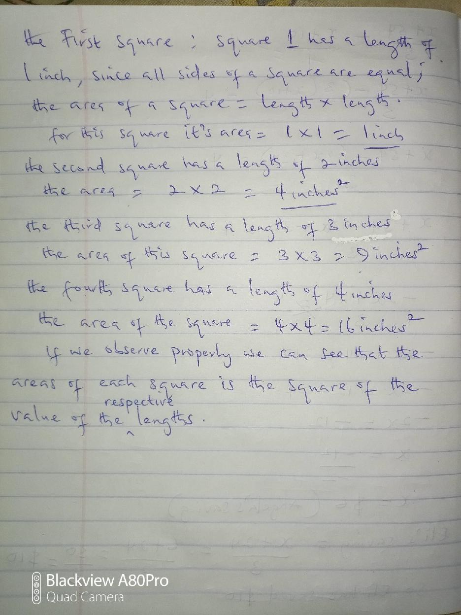 Each square, the area is the square of the respective lengths
