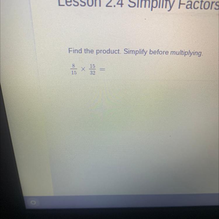 15x32=480 take away the 0s and you get 12/48 divide the numerator and the denominator by 4 and then you get 3/24