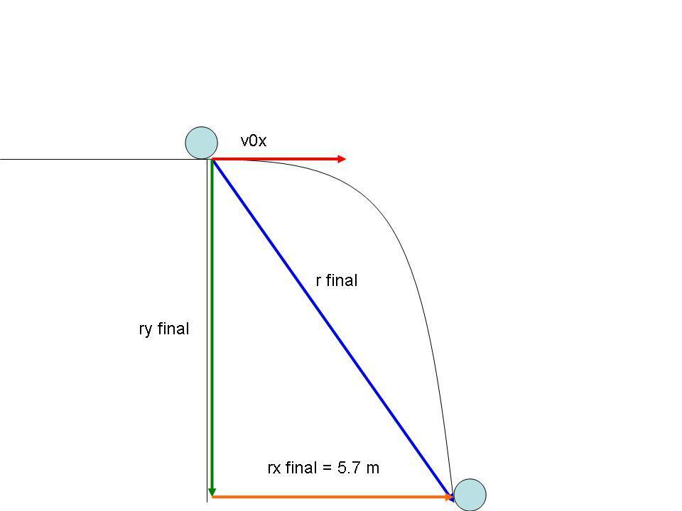 Seeing the figure, notice that when the ball reaches the ground the x-component of its position vector will be 5.7 m. Then: