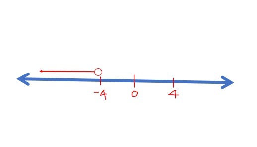 b) The interval notation is (-\infty,-4)