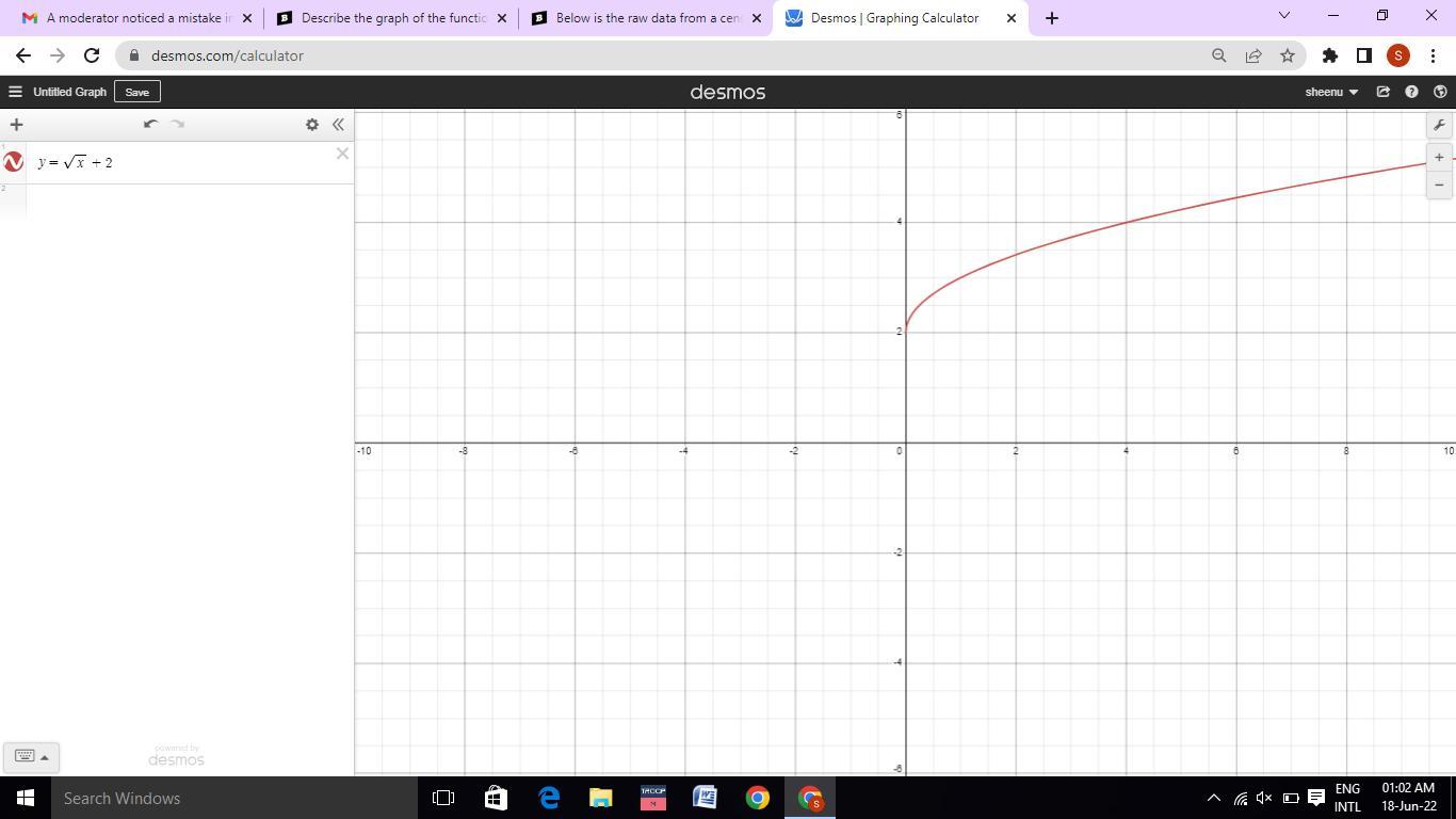 The graph is in the first quadrant and slightly increasing up from unit 3.