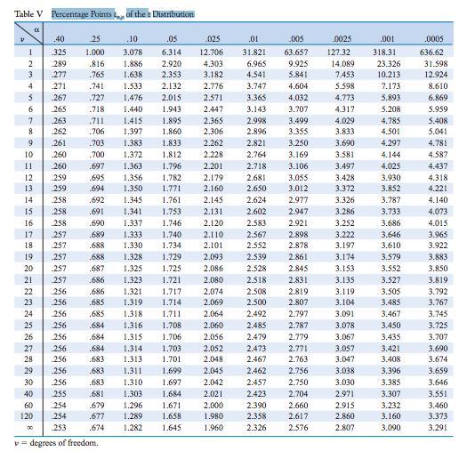So it would come being t (0.1, 24), if we look in the table, which I will attach the value of t is equal to 1.318.