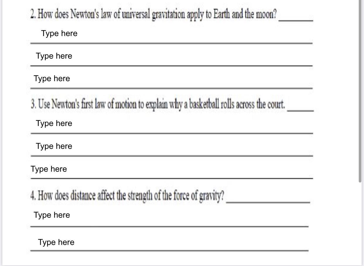2. Newton's law of universal gravitation states that every object in this universe is attracted to every other object, based on their mass and distance from each other. In the case of the Earth and Moon, for instance, since they are both very massive objects separated by a large distance, they have a gravitational pull strong enough to stay together but not strong enough to smash into each other.