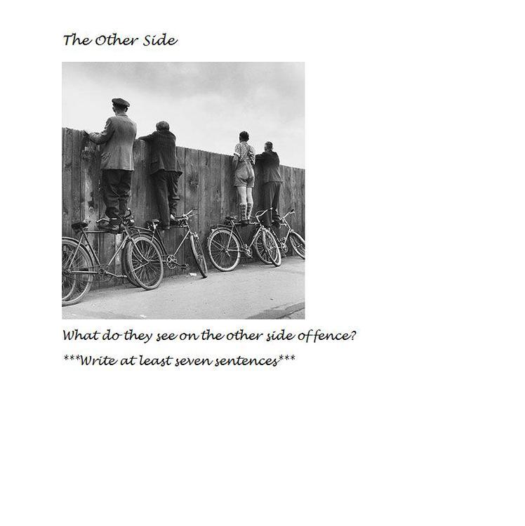 I just need someone to write 7 short sentences of what they think is on the other side of this fence. The first one to answer co