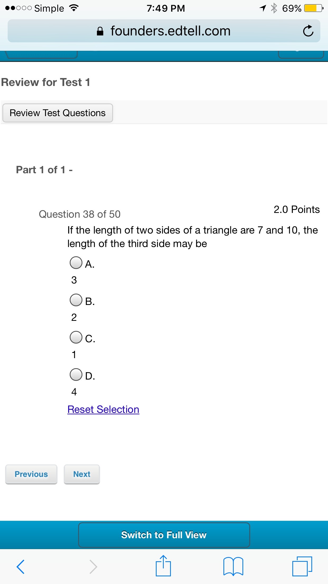 I'm going to guess not, because the hypotenuse is clearly the longest length, and all the choices are not above 10.