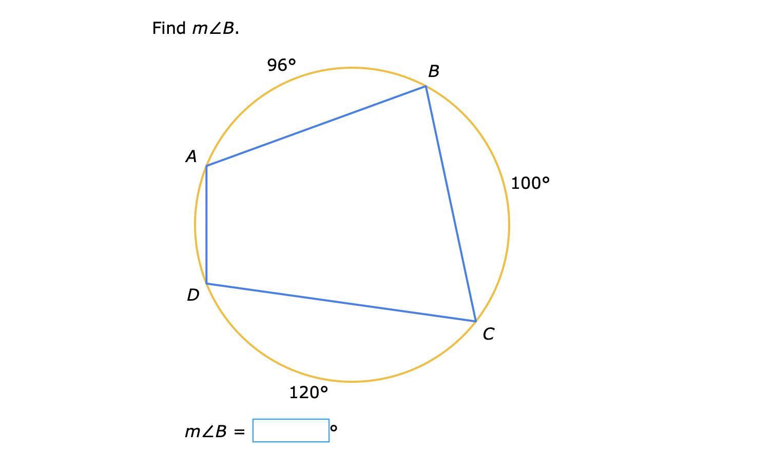 angle B = (1/2)*(164)