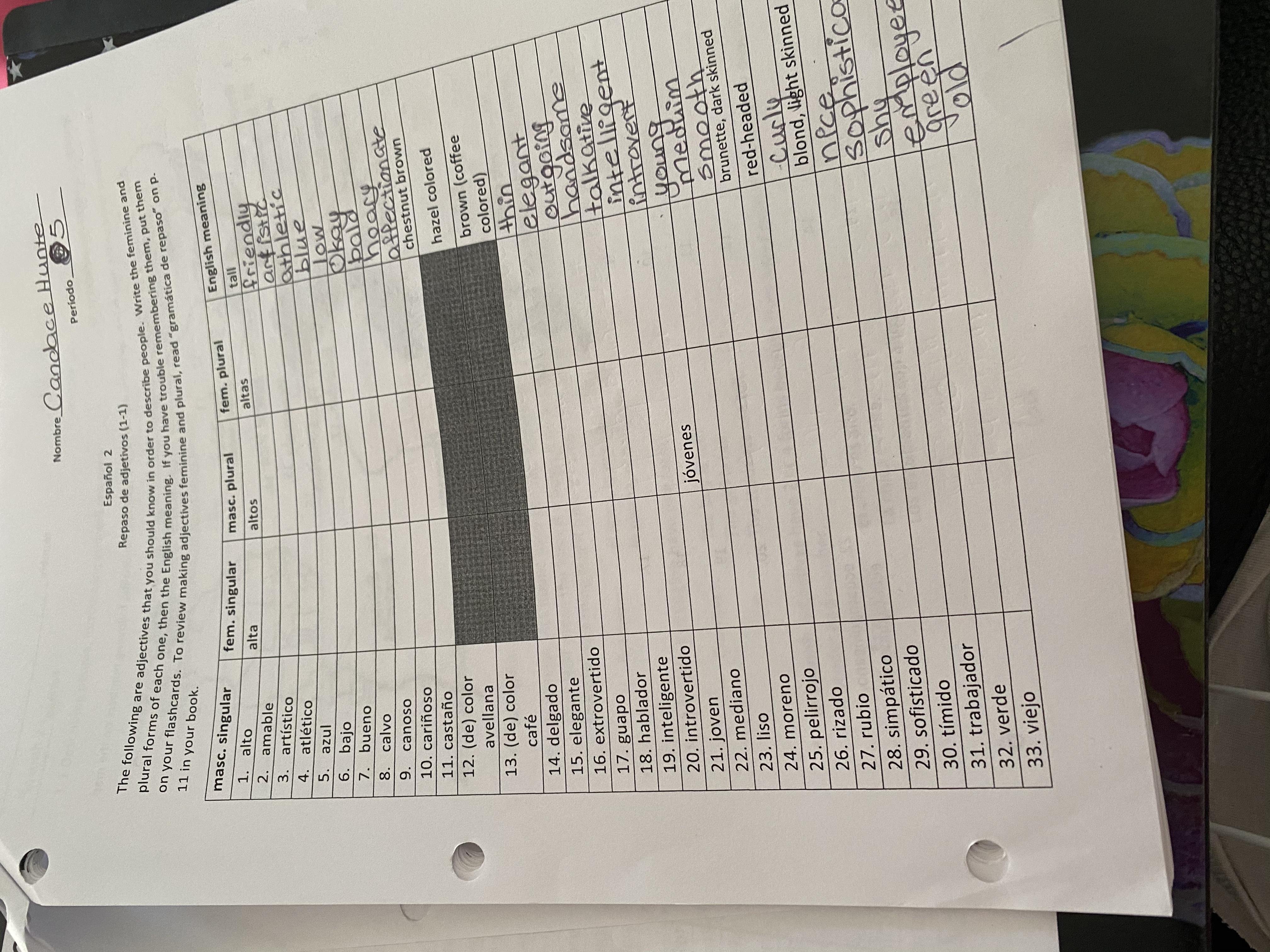 first row is the same word "amable" in all cause its like "ella es amable" or "ellos son amables" and "ellos son amables"