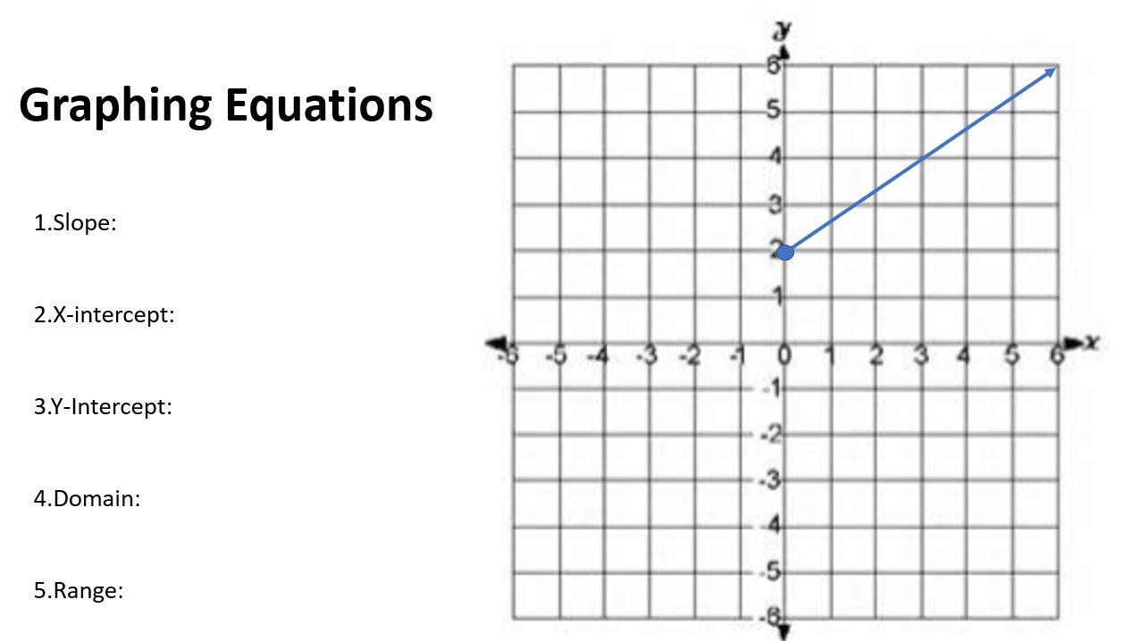 The domain is the possible x-values. Here, because the smallest x-value is 0 (from the point (0,2)), and there is no largest x-value (the arrow at the end of the line indicates the graph goes on to infinity), the domain is: x ≥ 0.
