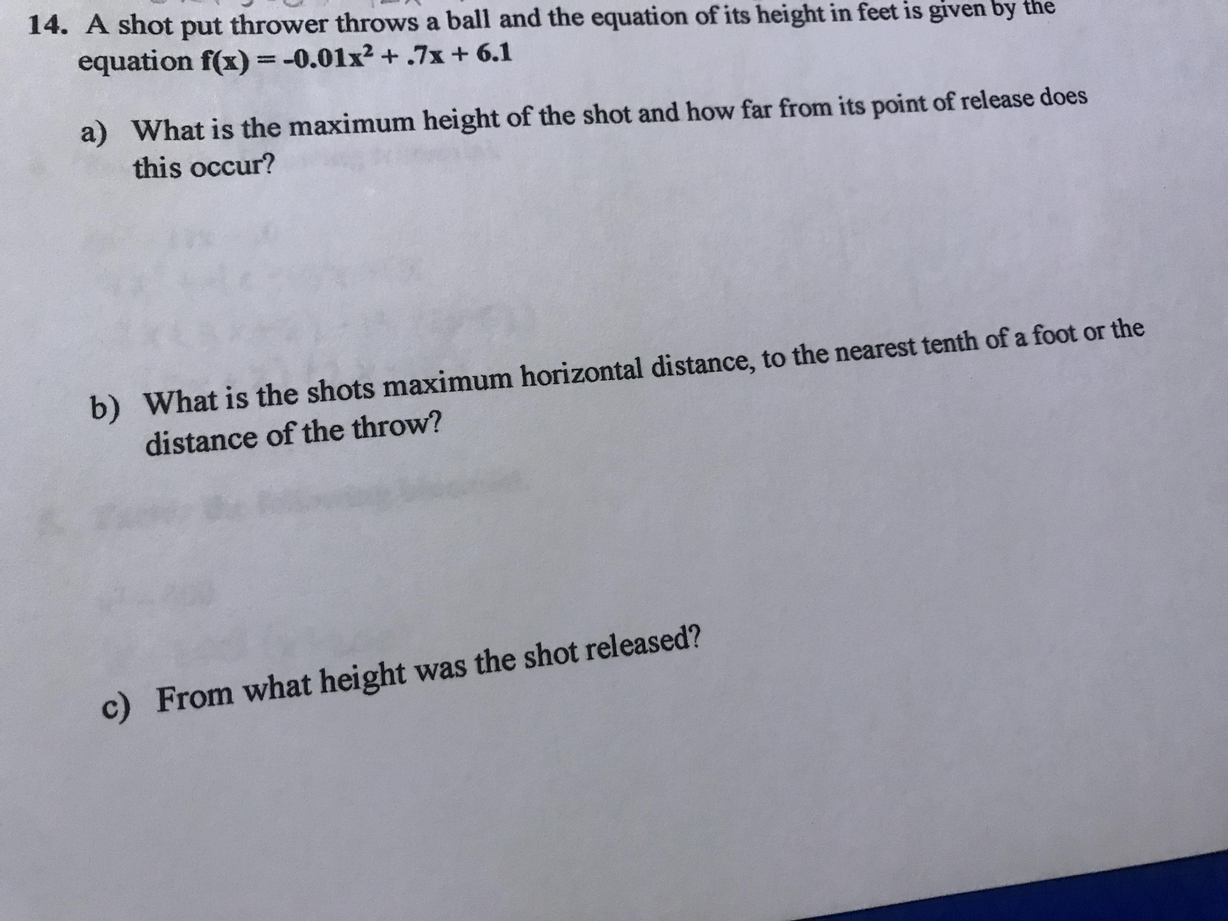 b) The maximum horizontal distance is when the ball lands, or when f(x) = 0.