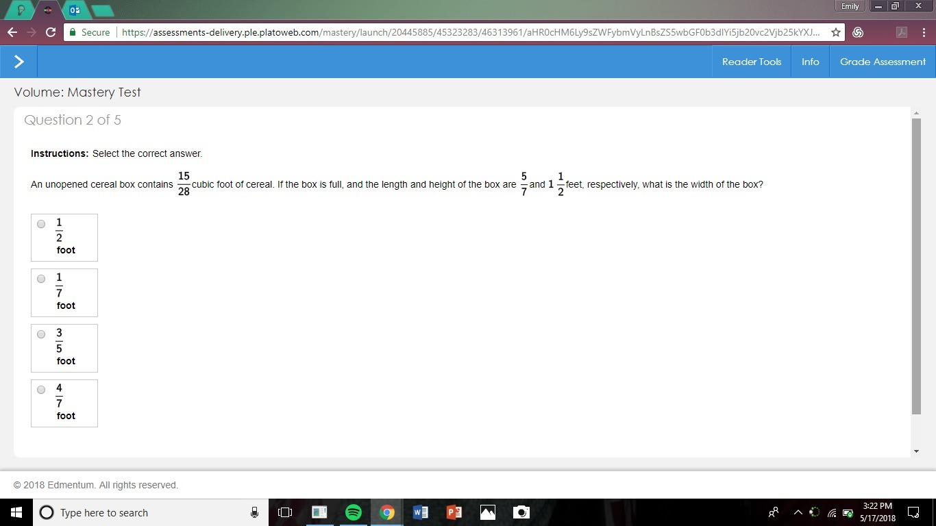 Putting those two together we get a fraction of 1/2. Your width is then 1/2 ft.