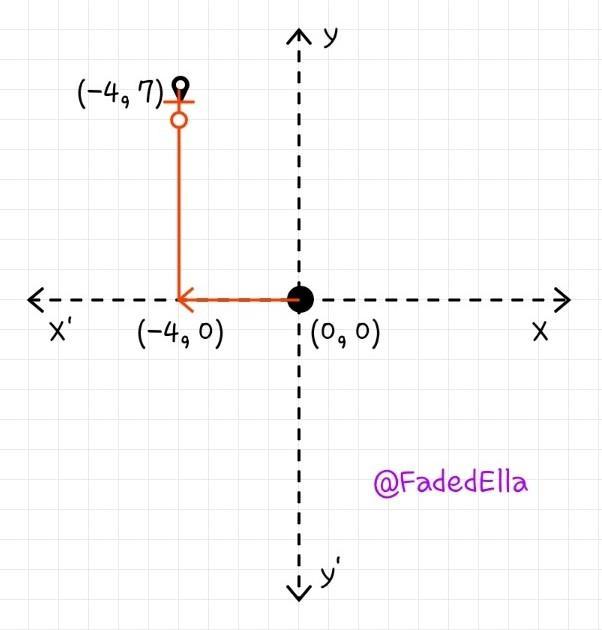 Then, from that point she moved 7 units upwards. On the upper side, there is positive y axis. So, Finally she will reach point (-4, 7).