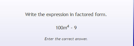 Write the expression in factored form. 100m^4 - 9