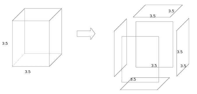 since the cube is just 6 squares stacked up to each other at the edges, we can simply get the area of each square and sum them up, and that's the surface area of the cube.