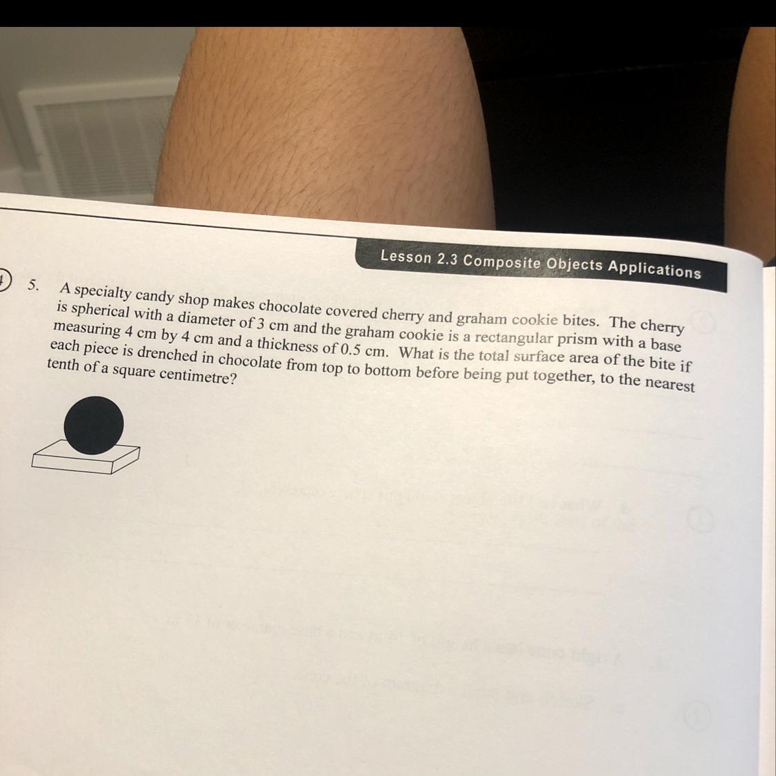 The total surface area of the bite= total surface area of the sphere + total surface area of the rectangular prism