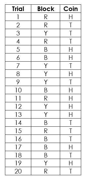 ses the coin. She conducted 20 trials. Here are her results below: