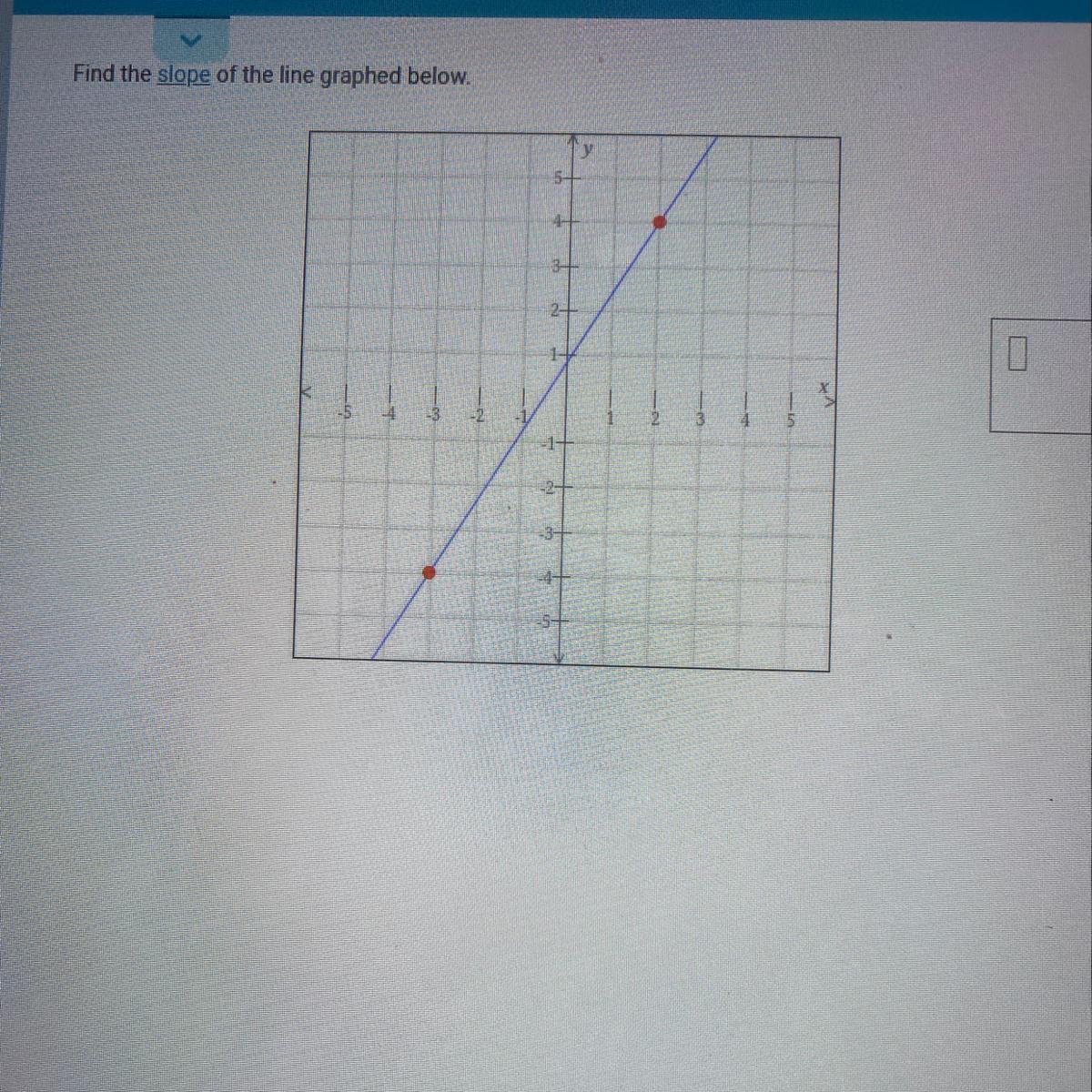 The slope is three because the x goes up 1 and y goes up 3 so it’s 3/1 which makes the slope 3