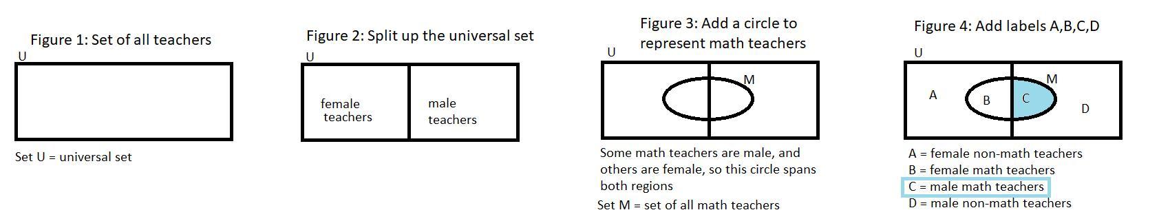 Figure 2 splits up set U into female teachers on the left and male teachers on the right.