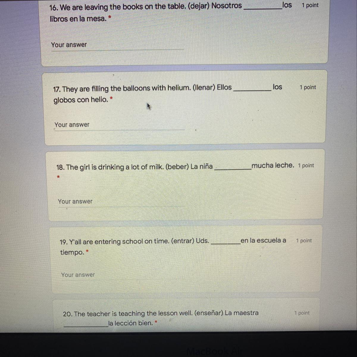 Write both verbs: the estar form AND the -ing form of the -ar, -er, and -ir verbs