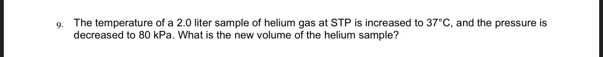 To solve the problem, we need to remember what STP means. STP means that the gas is at standard temperature and pressure, or 273.15 K (0°C) and 1 atm.
