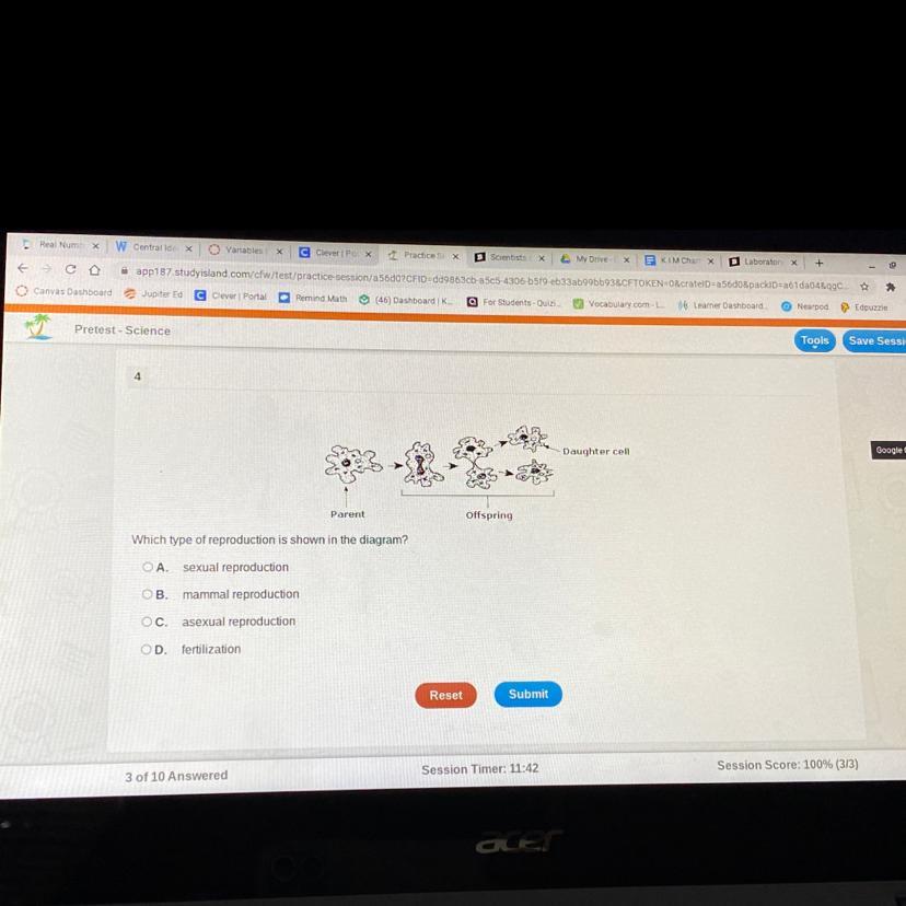 Asexual Reproduction is a kind of reproduction that does not change the number of chromosomes or involves gamete fusion. Asexually reproduced organisms have the same genes as the parent organism. The process of asexual reproduction is usually an organism splitting itself to create what is basically a clone of itself.