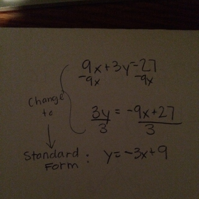 If you don't have a graphing calculator then use graph paper or sketch a graph and graph the equation. (the slope being "-3/1" and the y intercept being "9")