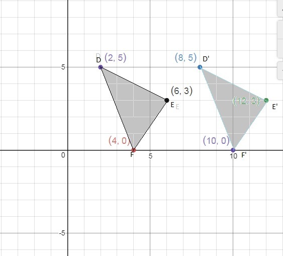 D (2, 5)=D'(2+6, 5+0)=D'(8, 5)