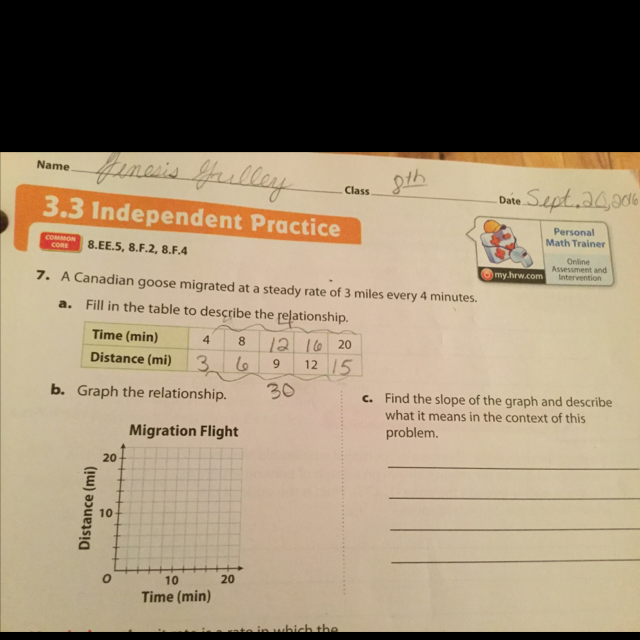 So you will put the time and distance together like this (4,3) (8,6) (12,9) (16,12) (20,5)