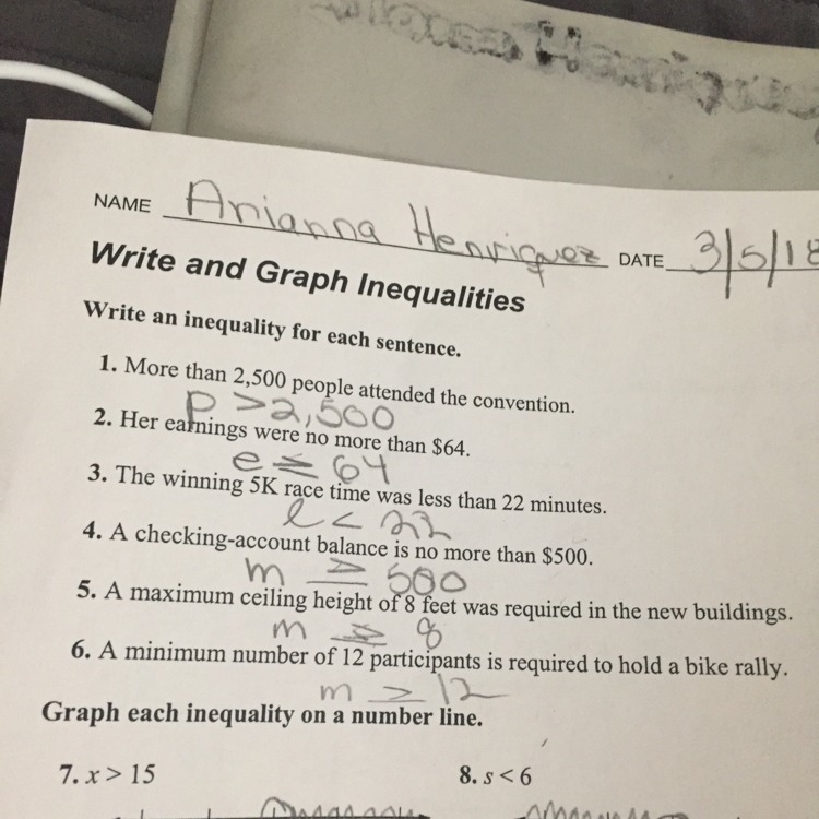 Number 2 is wrong because it says NO more than so it would be the opposite of a more than sign. So it should be a less than or equal to sign. The same goes for number 4. Number 5 is wrong as well because since it is the maximum then it cannot be higher than 8, so there so be a less than or equal to sign.