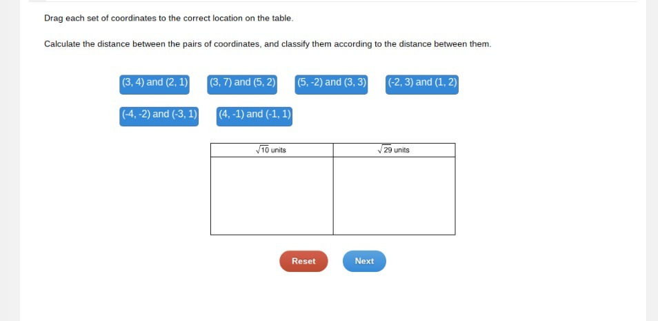 Apparently some of our squared distances will be 10 and some will be 29. We can pretty much eyeball which is which, but let's work them out: