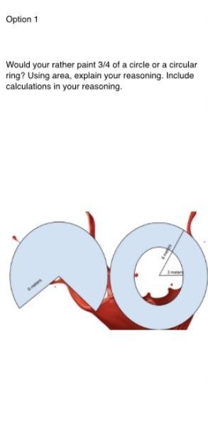 From the calculations shown along with the explanations, both the three-quarters and the ring have exactly the same area, which means you are going to spend exactly the same quantity of paint and spend the same amount of time painting either one of them.