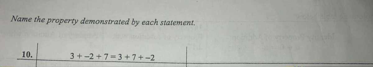 Commutative Property: When two numbers are added, the sum is the same regardless of the order of the addends.