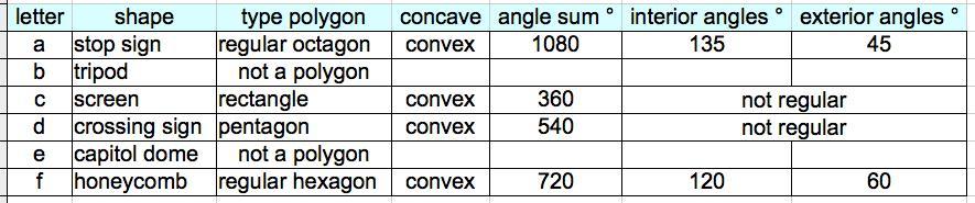 A) The given shapes are classified and described in the attachment. (A polygon is a plane figure, so a "tripod" and a "dome" are not polygons.)