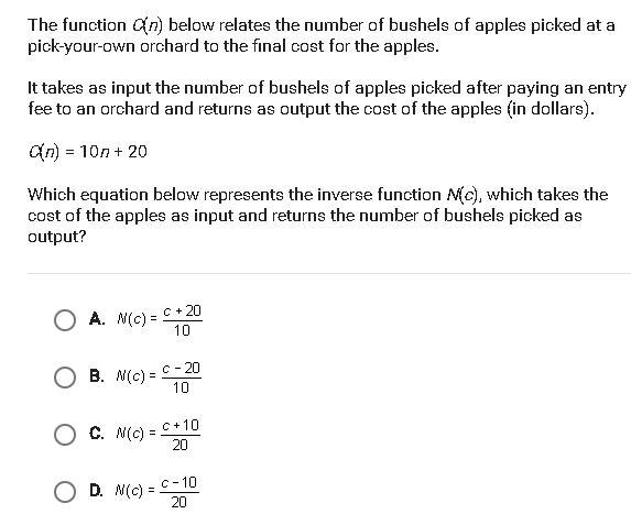 N(c) = (c-20)/n Answer
