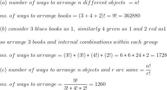 3 green, and 2 red. (a) In how many ways can the books be arranged on a shelf? (b) If books of the same color are to be grouped