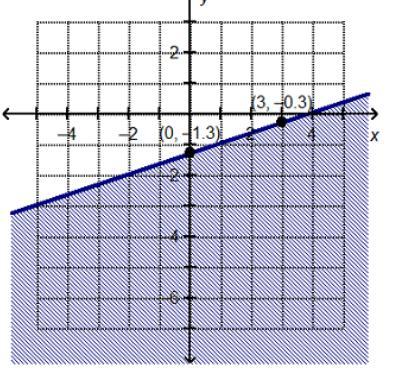 Now, the zone of solution includes the straight line which passes through the points (3,-0.3) and (0,-1.3)