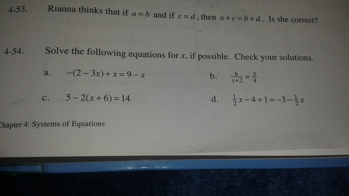 B. might be 4/x=3/4. I'm no mathematician, but if it's wrong, blame my teacher. d would probably be something. I'm no good with numbers.