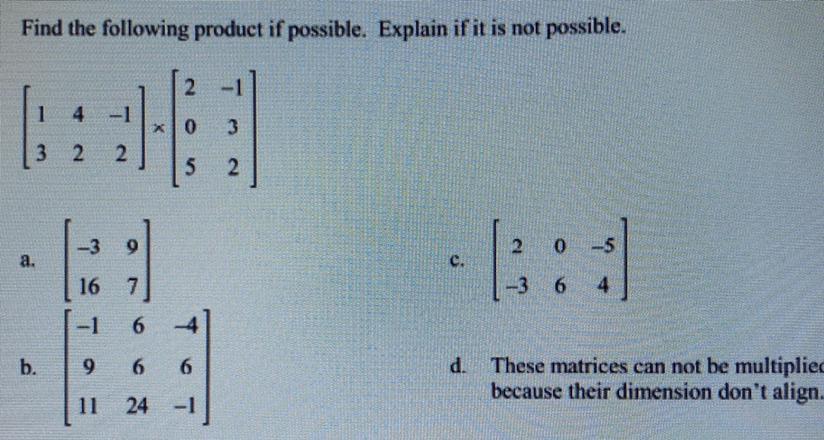 Find the following product if possible. Explain if it is not possible. (See picture)