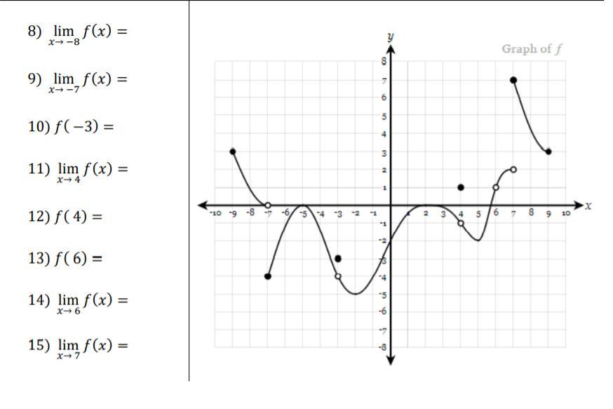 9) when we approach x = -7, from the left the function gets towards 0, while when we approach it from the right it gets closer to -4