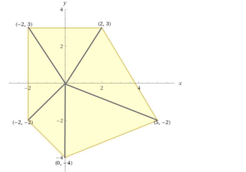 There's a right angle that they want you to make a rectangle out of. I'm ignoring that and using each of the five sides to make a triangle with the origin.