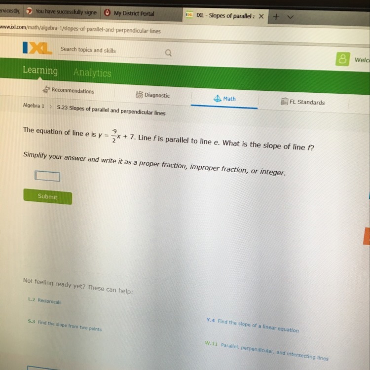 Therefore the slope of line e is -9/2
