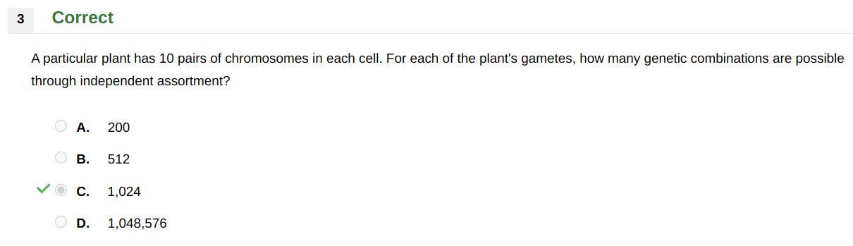 For 10 chromosomes - there are 2¹⁰ possibilities. 2¹⁰ = 1024