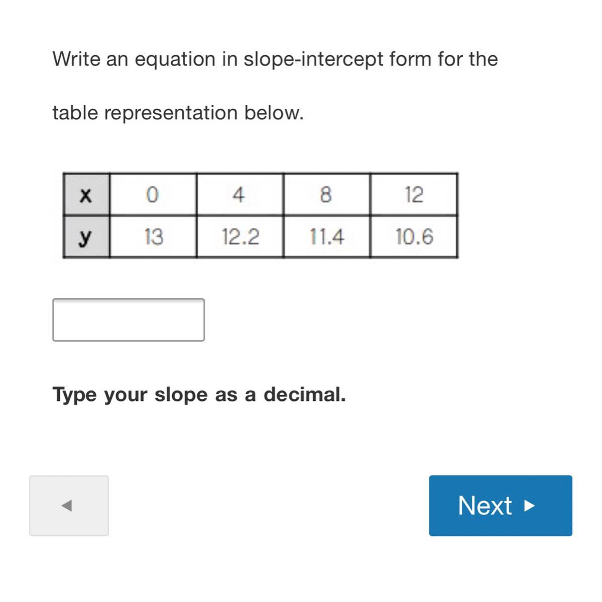 With m = -0.2 and b = 13, we go from y = mx+b to y = -0.2x+13