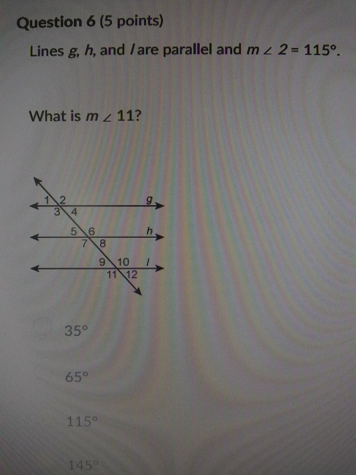 So in short, angle 2 and angle 11 are congruent. We are given angle 2 to be 115 degrees. Angle 11 is also 115 degrees.